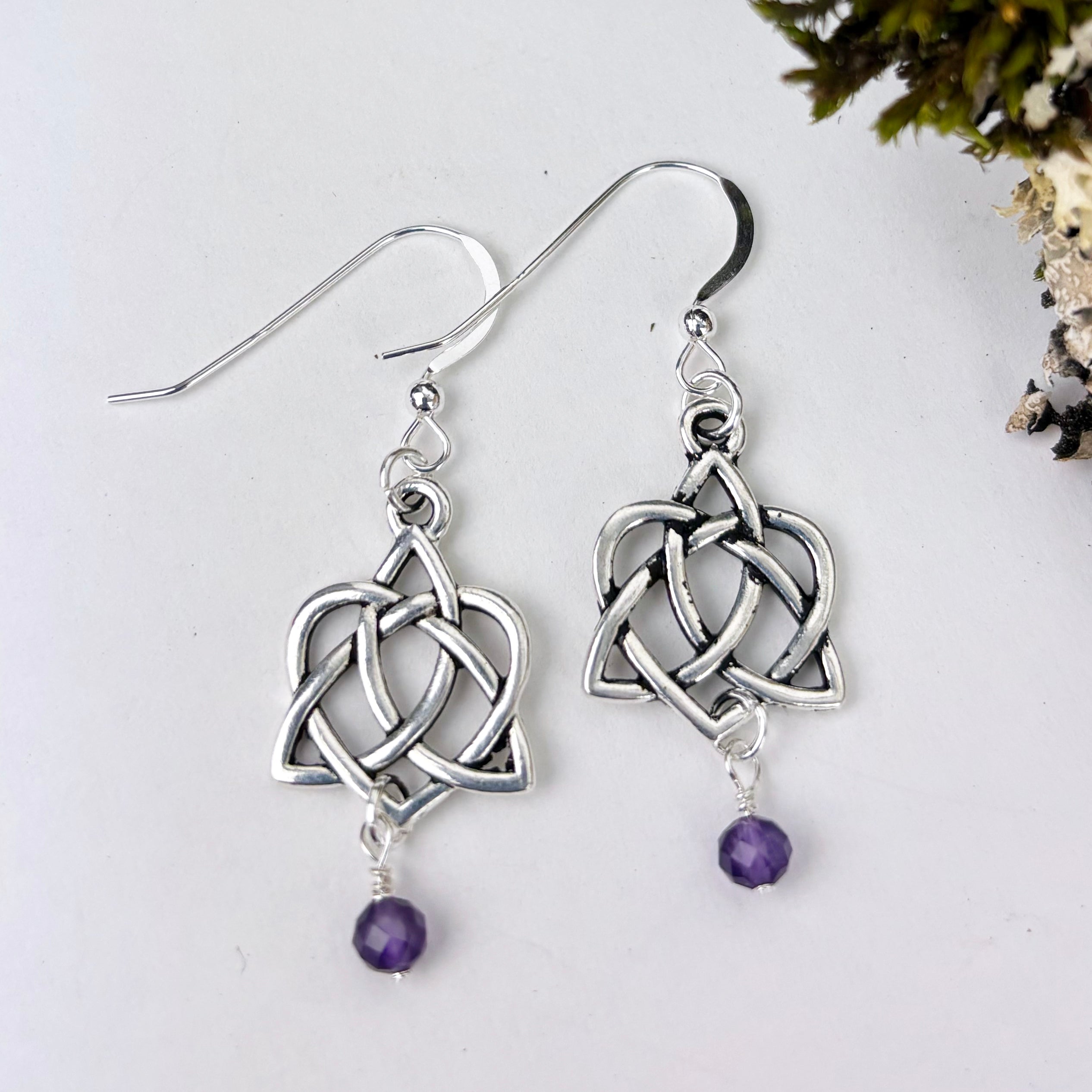 Celtic Trinity Heart Knot with 4mm faceted Amethyst gemstone