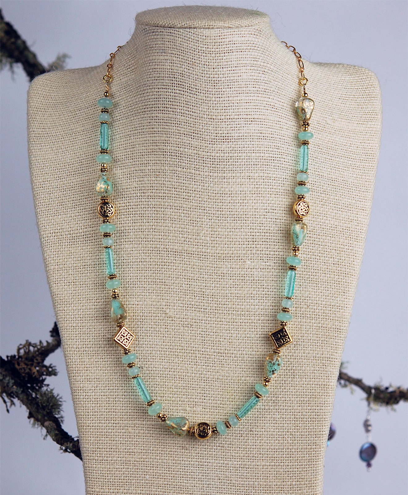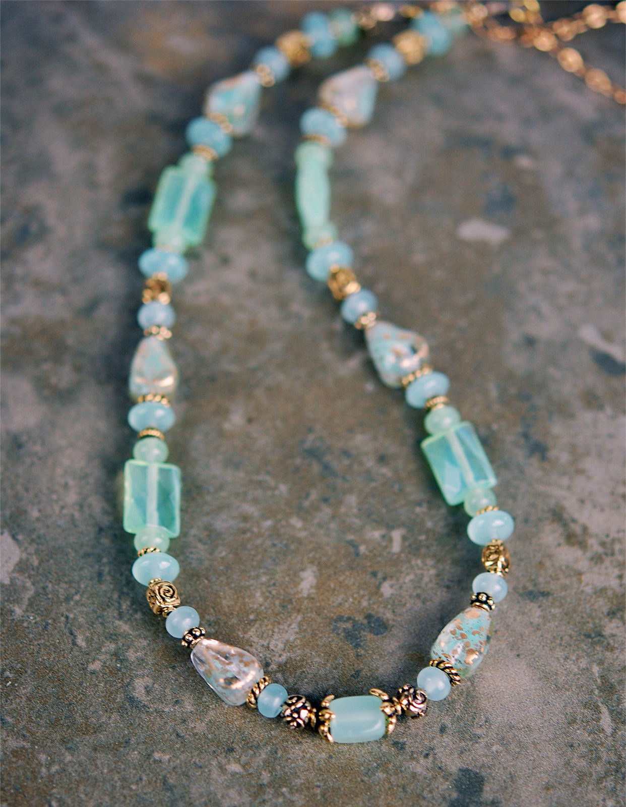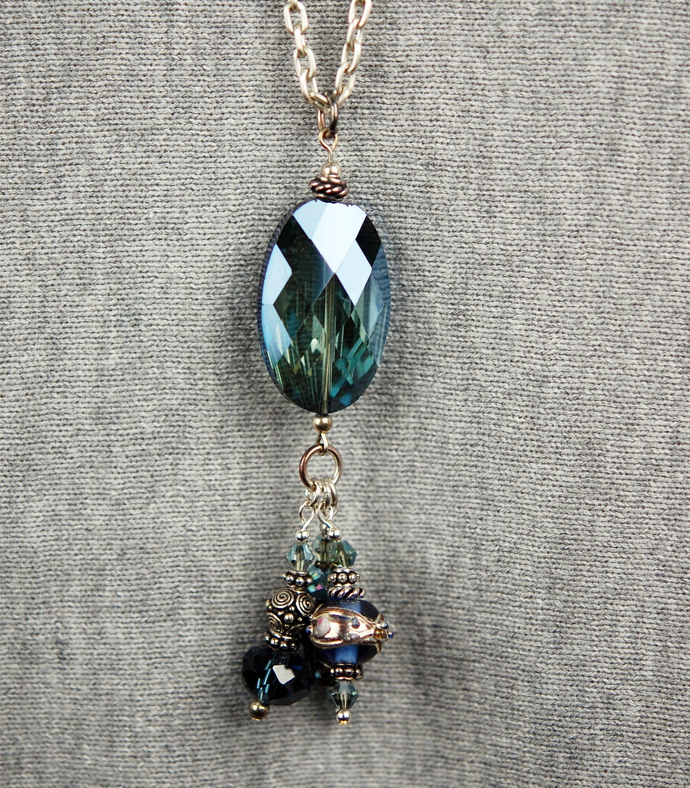 Necklace with Lampwork Beads and Sapphire Gemstones