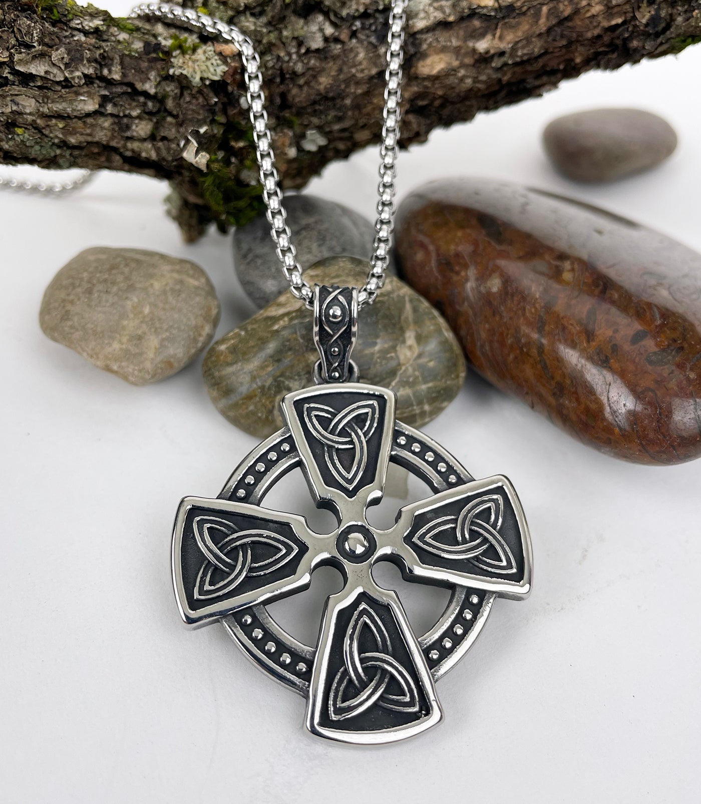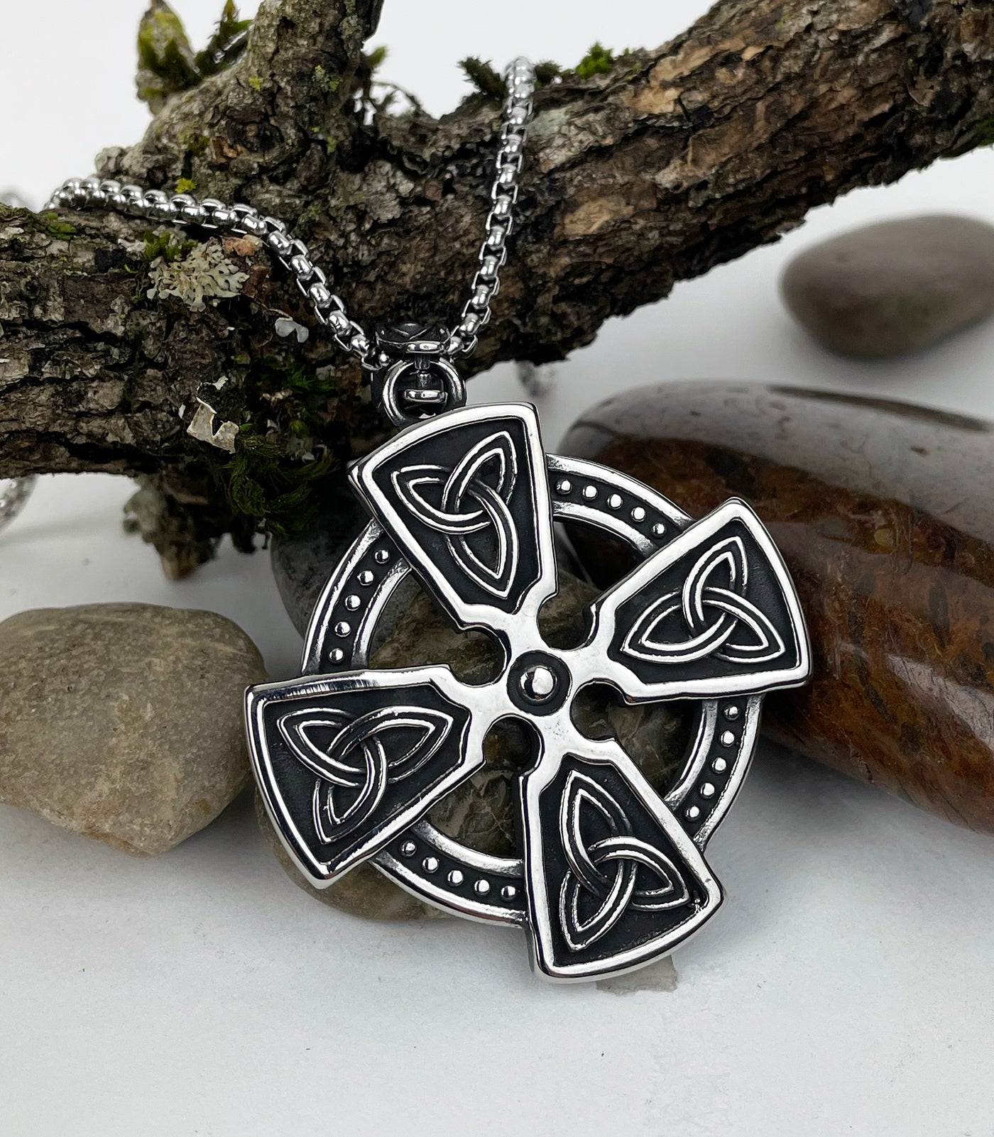 Square Celtic Cross with Trinity Knots Stainless Steel Pendant