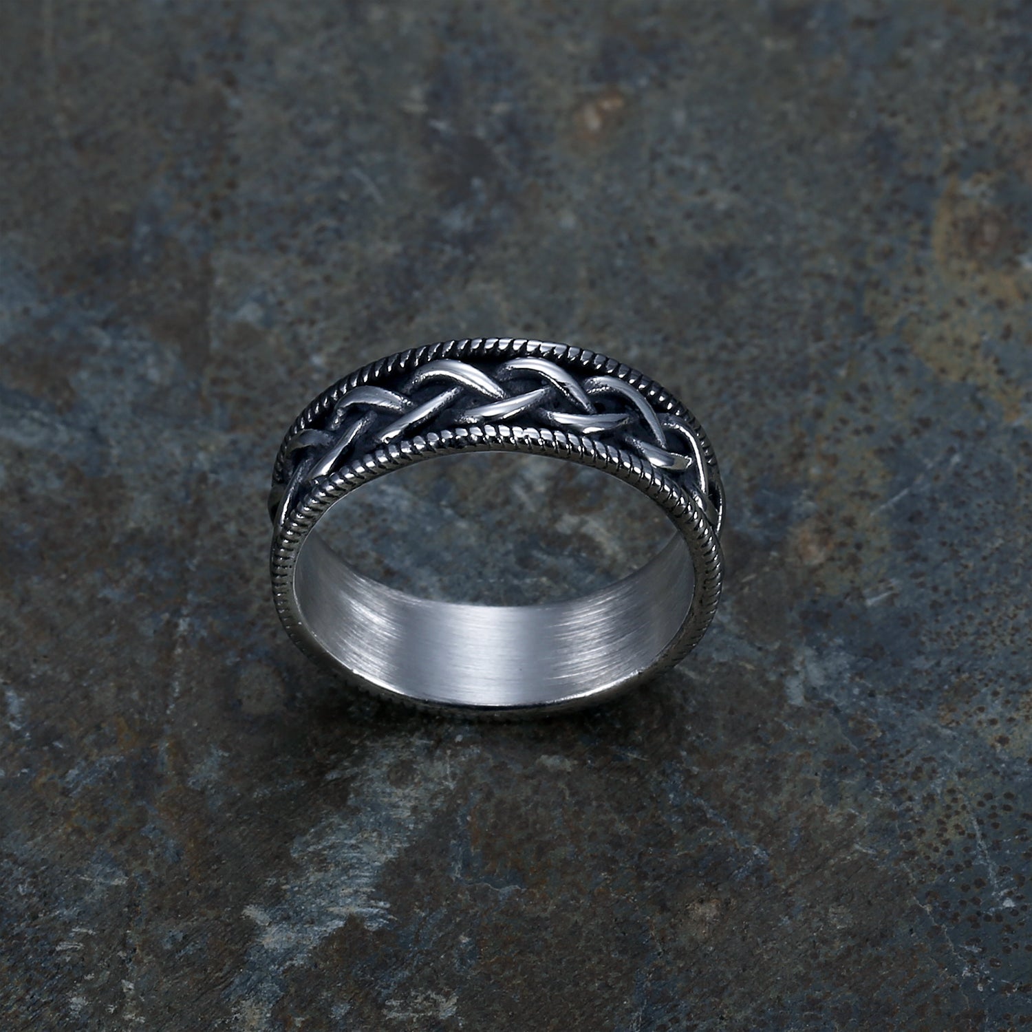 Narrow Celtic Braid with Beaded Trim Band Ring