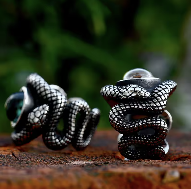 Protected by a pair of serpents, the gaze of the mythical dragon never falters. Crafted from top-notch stainless steel with darkened accents and a glass encased dragon's eye.